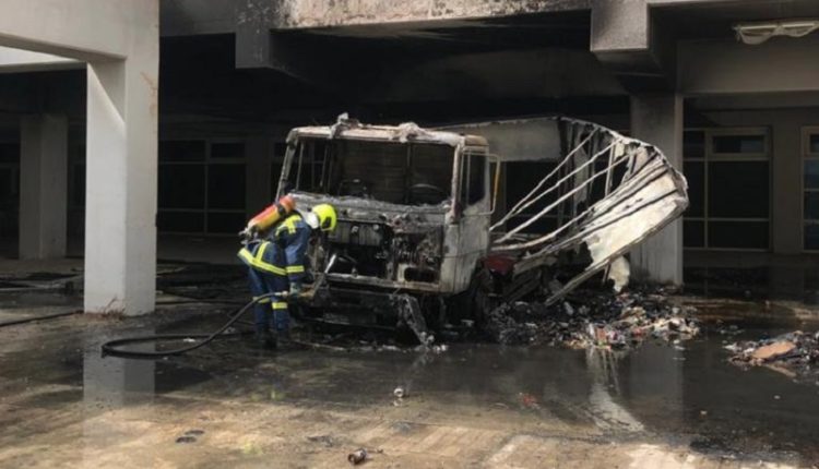 Ολοσχερώς καταστράφηκε ένα μεγάλο όχημα από την φωτιά που ξέσπασε στο ΟΑΚΑ.