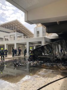 Η φωτιά προκλήθηκε στο ίδιο το όχημα από άγνωστη αιτία. Το όχημα ήταν σταθμευμένο στον περιβάλλοντα χώρο του ΟΑΚΑ, πίσω από το Κολυμβητήριο. Υπήρξε άμεση επέμβαση της ΕΛ.ΑΣ και κατάσβεση της φωτιάς από την Πυροσβεστική.