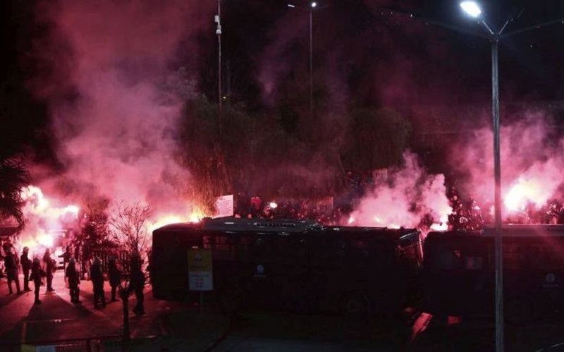 Στην έκθεση της ΕΛ.ΑΣ. γίνεται αναφορά σε όσα έγιναν κατά την άφιξη της αποστολής του Παναθηναϊκού στο «Γ. Καραϊσκάκης», για επεισόδια φιλάθλων στους χώρους του γηπέδου τα οποία συνδέονται με εκτεταμένες φθορές ξένης περιουσίας, είτε με βιαιοπραγίες κατά προσώπων.