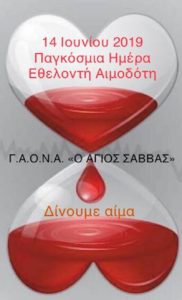 Στην καμπάνια για την εθελοντική αιμοδοσία, με αφορμή την Παγκόσμια Ημέρα Εθελοντή Αιμοδότη στις 14 Ιουνίου, συμμετέχει το Γενικό Αντικαρκινικό - Ογκολογικό Νοσοκομείο Αθηνών «Ο Άγιος Σάββας».